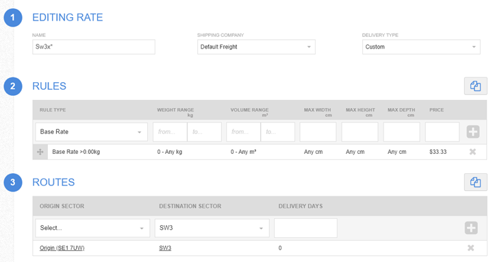 Once the Post Code Sectors have been created, they can now be attached to Freight rules to create Route.