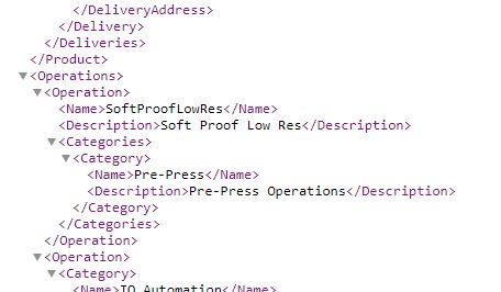 Any operation configured with the ‘Enable Production Integration’ tick will display as a child element here. The values are simply ‘1’ to avoid empty tags that some third party systems do not handle appropriately.