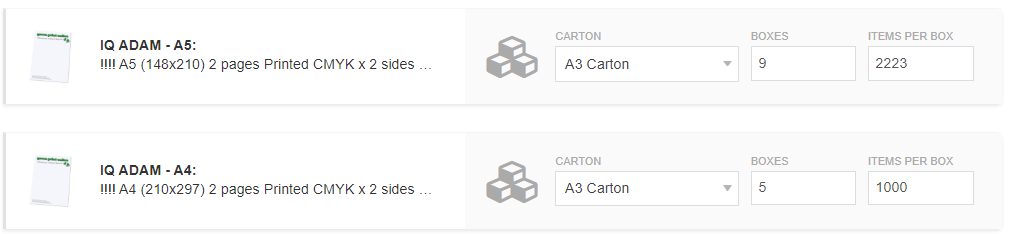 Using a setting to use the least cartons, the same jobs default to A3 cartons: