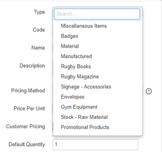 or type a code if it is new. If you are creating your product codes they should