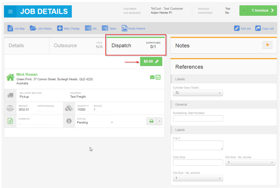 When doing split deliveries on the new Job details screen you need to first click on ‘Dispatch’ followed by the green ‘Modify Freight Details’ box with the freight price on it.