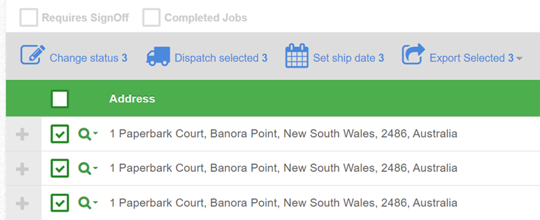 Setting deliveries to ‘Dispatched’ simply updates the delivery status. Consignments are not generated.