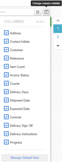 The dispatch board is customisable on a per user basis, allowing users to set what columns are displayed and hide information that may be irrelevant to them by enabling each column they wish to include in their view. Clicking ‘Reset’ resets the columns back to the factory default as shown below: