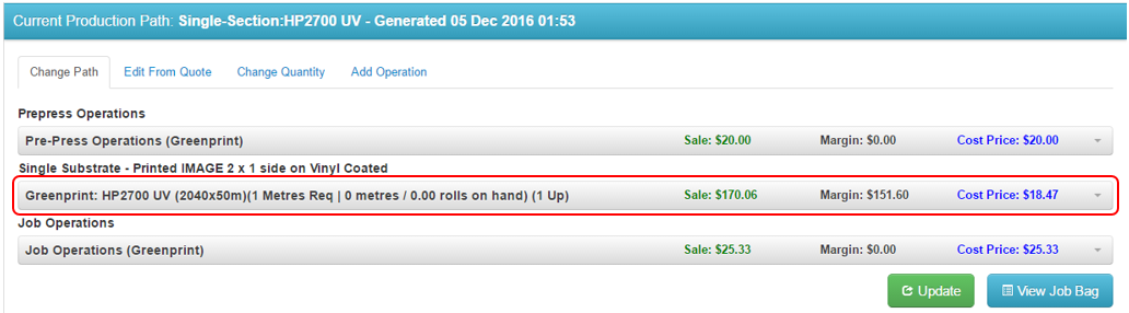 This allows you to select a different print path to the one quoted. Click the sections 'Print' option bar: