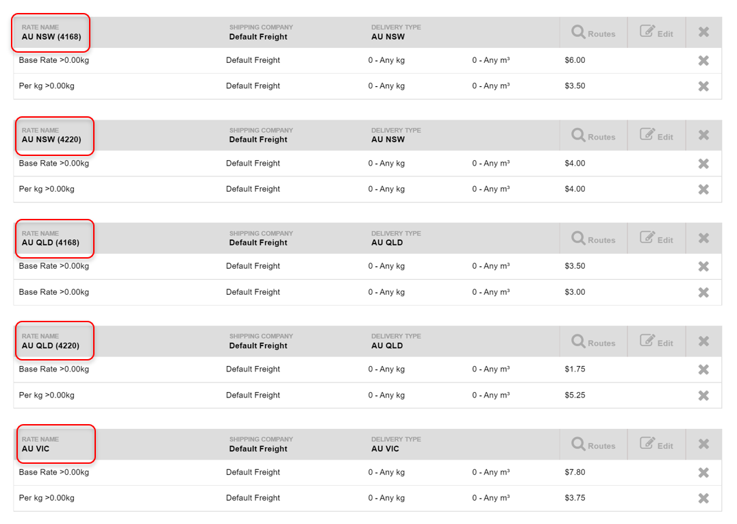 Freight calculations are based on rules relating to the ‘Origin’ and ‘Destination’ Post Codes.