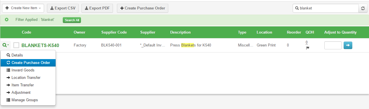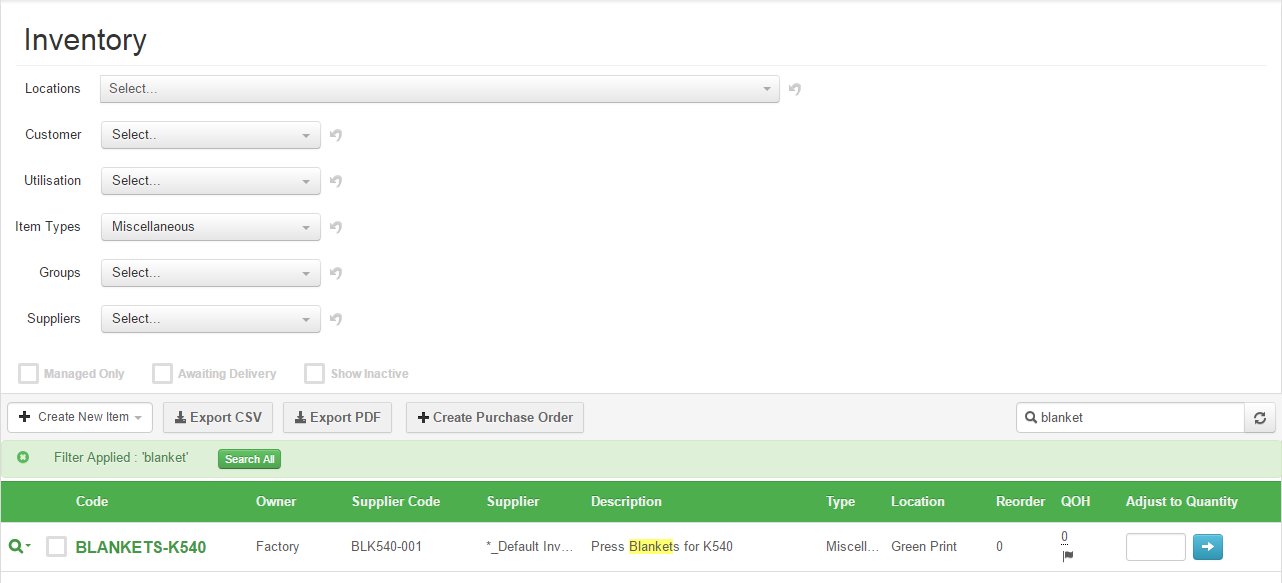 Inventory Admin Navigate to Admin > Inventory > Items Inventory is the main admin page for items kept in inventory. This includes paper, materials, manufacture goods and other supplies you order or manage in printIQ. There are several drop down ...
