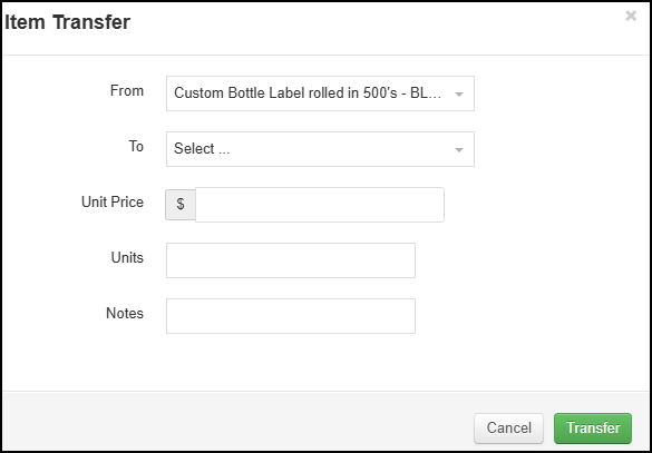 After selecting the item type, a new window will open. The fields will vary depending on the type of item selected. Enter the item details as required.
