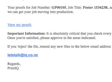 If a soft proof operation was specified, an email will be sent to the recipient upon completion of successful preflight. Click the View my proofs link.