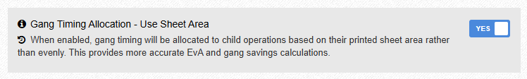 Gang Timing Allocation - Use Sheet Area (v50 onwards)