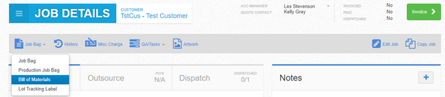 A ‘Bill of Materials’ can also be generated for staff to use: