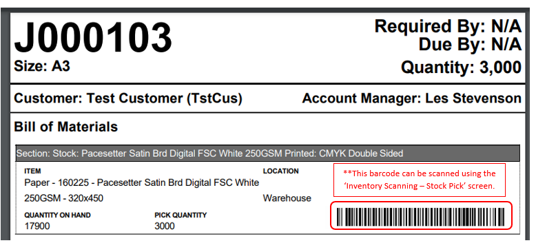 Back in the job details screen, notes are added showing the pick details for quick reference: