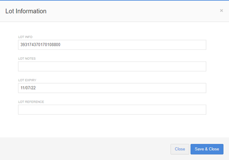 *The above barcode is the ‘Lot’ field. This can be used for scanning into the