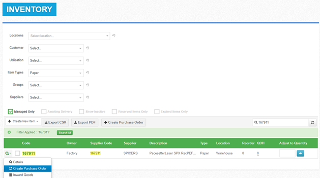 Inventory Purchase order – Create a purchase order for the total qty you have currently on hand.