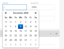 The dropdown will list all available lots along with the quantity on hand and the expiry date: