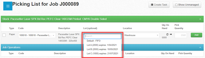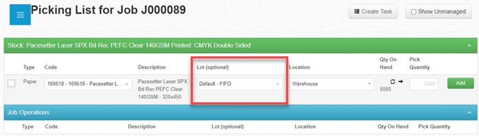 In this example the job requires a pick qty of 2500. We have 5000 on hand.