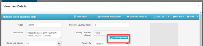A ‘Stock Adjustment’ dropdown will show. You can select the lot you need to edit from the ‘LOT’ dropdown: