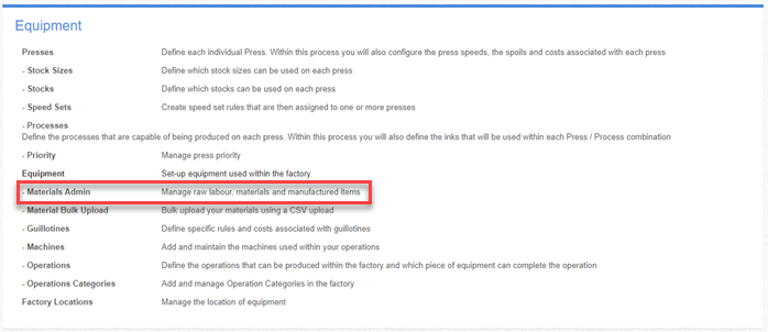 This is managed from ‘Material Admin’ under ‘Equipment’ in the ‘Configure the Factory’ screen.