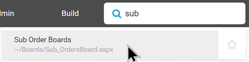 To configure the columns to show or hide, the Sub Orders Board can be accessed by searching for ‘sub’ and opening the entry found: