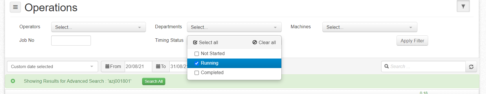 Staff can use the dropdown to access the job bag where they will log on and off of operations: