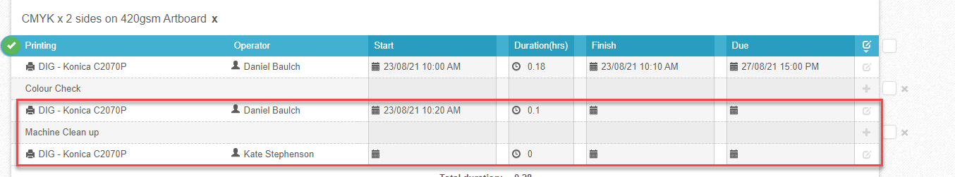 These ‘Sub-Operations’ can be logged onto individually on the job bag: