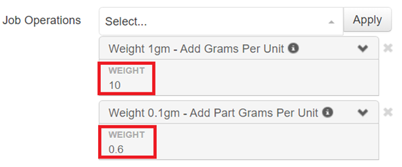 Each operation type can add a weight per unit and / or an overall weight per product.