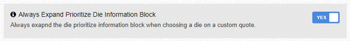 With this in mind, you can configure a custom template to prioritize the die as the starting point for the quote.