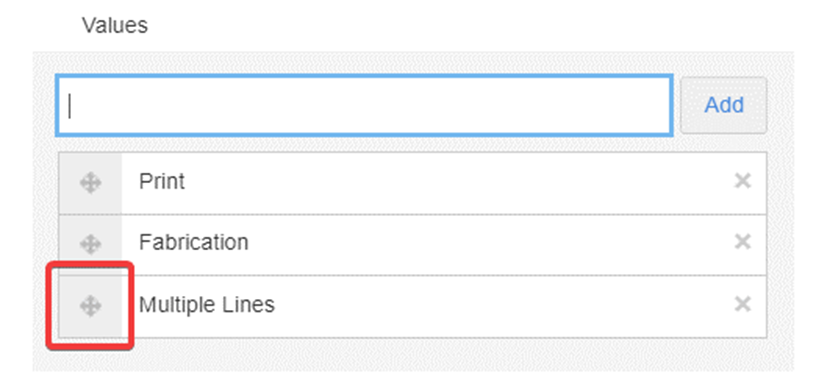 To add a new value to the list, just type in the text and click the ‘Add’ button.