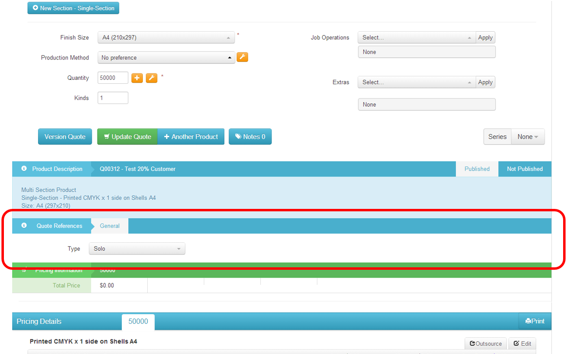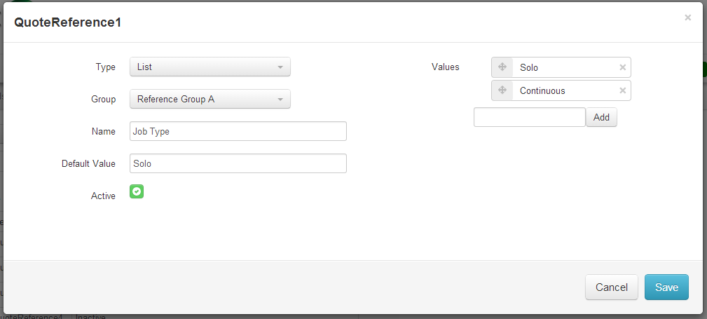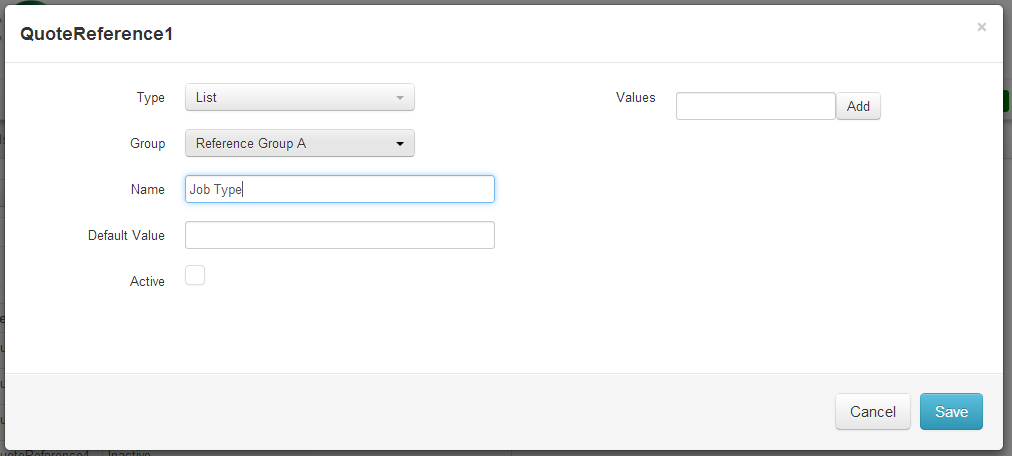 Click on the ‘eyeglass’ next to the job reference and a window will drop down. Use the top part to create a standalone reference or the ‘Copy From’ to link it to a ‘Quote Reference’: