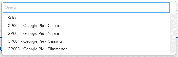 In this example, 'Georgie Pie – Napier' can place orders and the invoices will be linked and to the Georgie Pie Ltd Head Office: