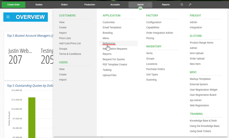 To access the References Admin screen, select Admin from the main menu and under Application. there is an option for References (Admin-> Application -> References):