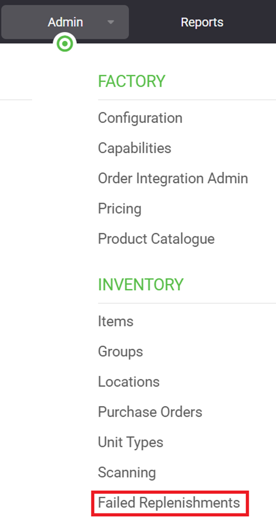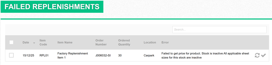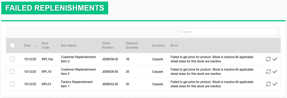 the request is recorded as a Failed Replenishment. This typically occurs when