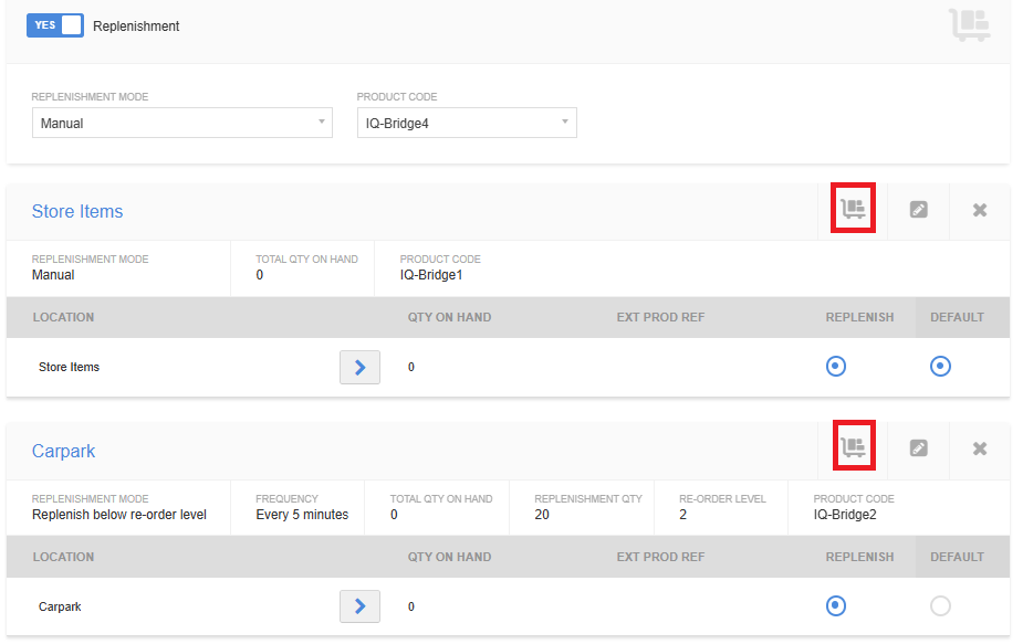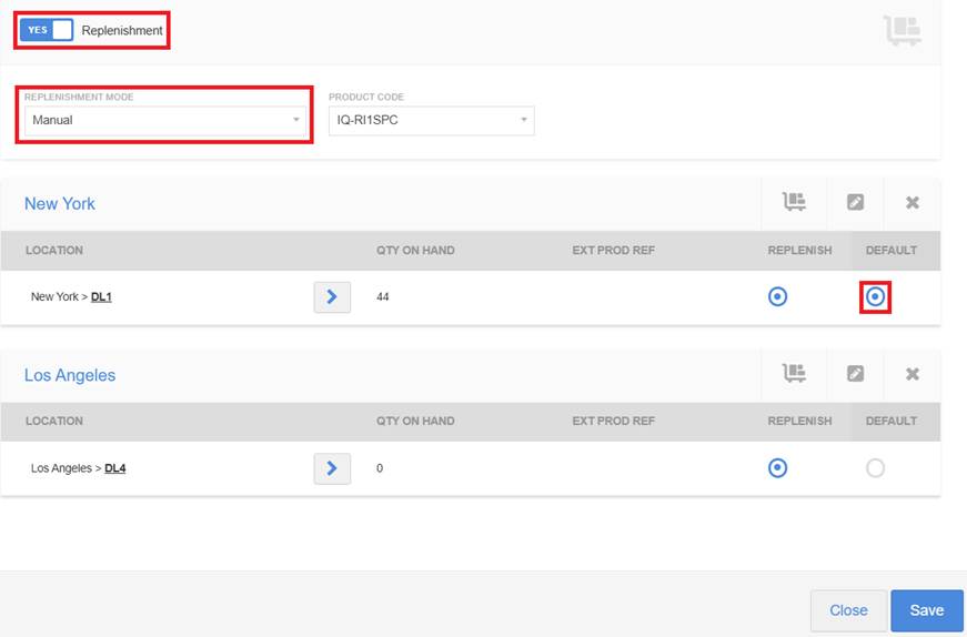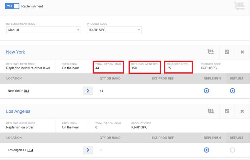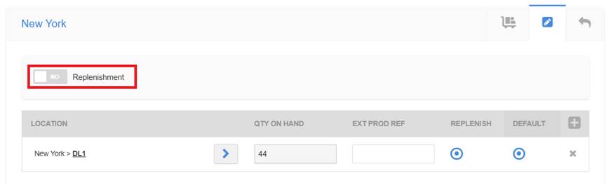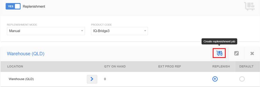 Replenishment can be initiated from either the location section of the