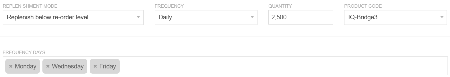 exposes a day selector field. This sets the days of the week the replenishment