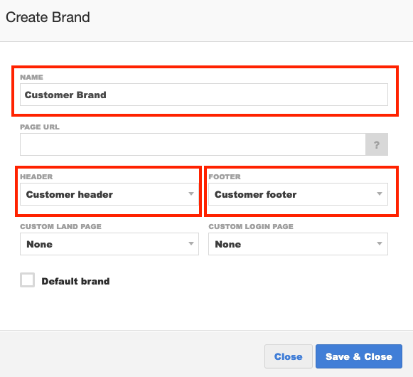 b. Now setup your customer brand – choosing your header and footer: