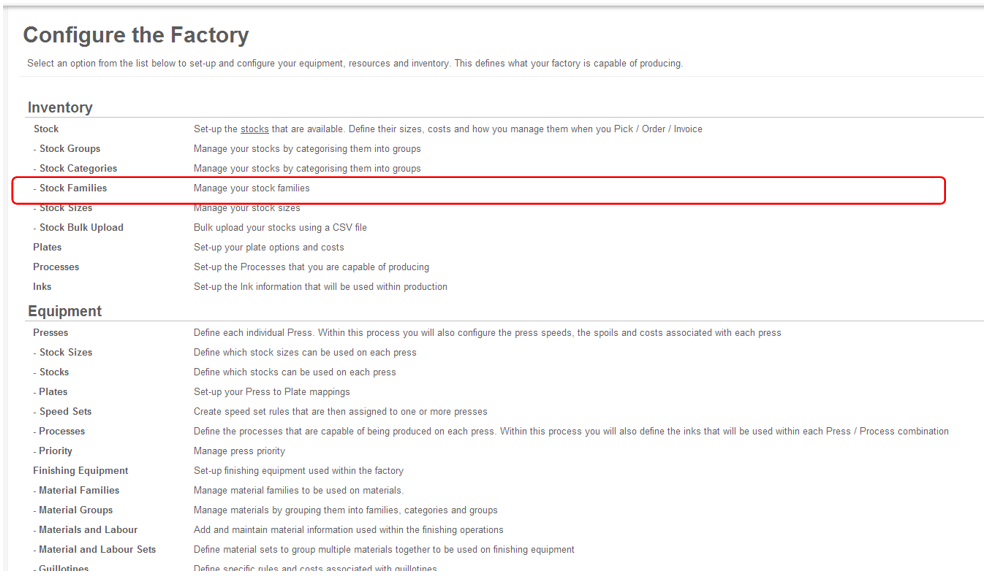 You can make a ‘family’ here and the option will be available to you later to link to a family of stocks.