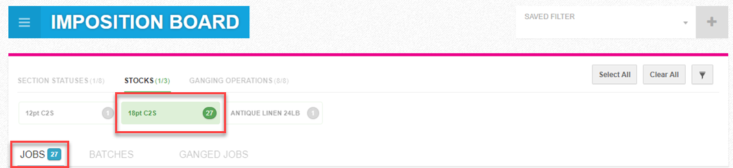When you have a long list of jobs in printIQ, you can use the ‘Imposition Board’ to filter down to common factors