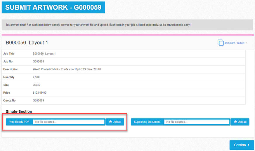 Navigate to the folder you exported the imposed pdf files to and based on the job title, you can select the correct file to upload: