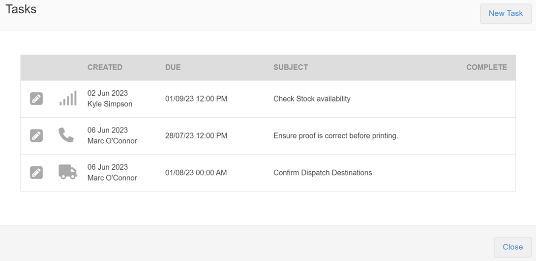 Once the task has been dealt with, it can be marked as ‘Complete’: