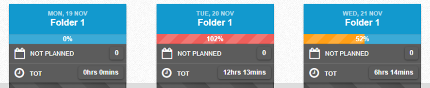Under each, you will see the number of ‘Planned’ and ‘Unplanned’ jobs and the TOT (Total Operational Hours) along with a ‘progress bar’ for a visual capacity reference. You can also place your cursor over the sections to see additional details: