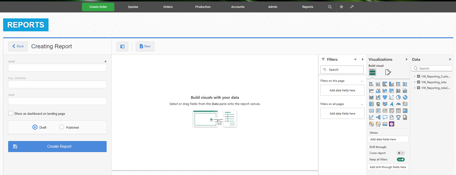 The page will then change to either 'Creating Report' in the editor or you will be redirected to PowerBI Service. The image below show the Creating Report screen in printIQ: