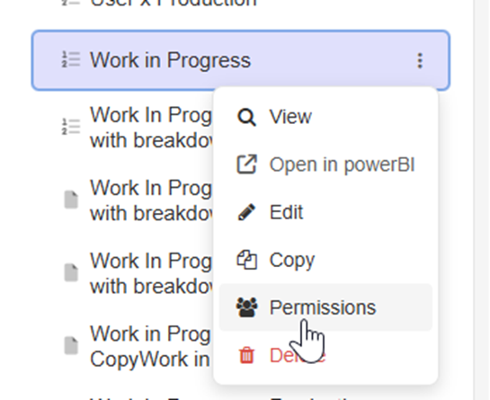Folders can be clicked to view the reports inside. There are multiple options for each, which can be seen by clicking the 3 dots icon to the right of a report name: