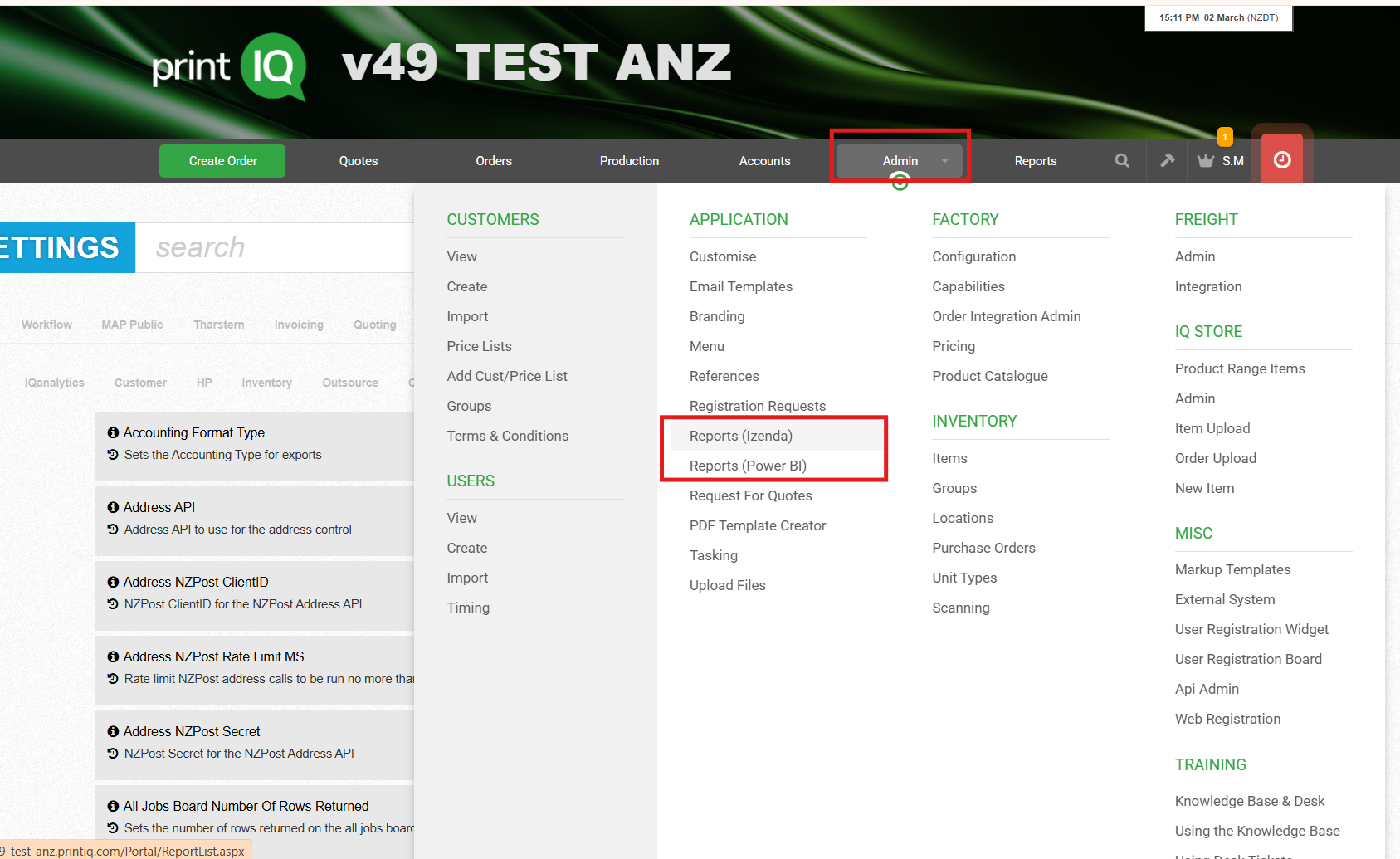 Once your user has been assigned the appropriate role, the reports option will display in the menu under Admin -> Application: