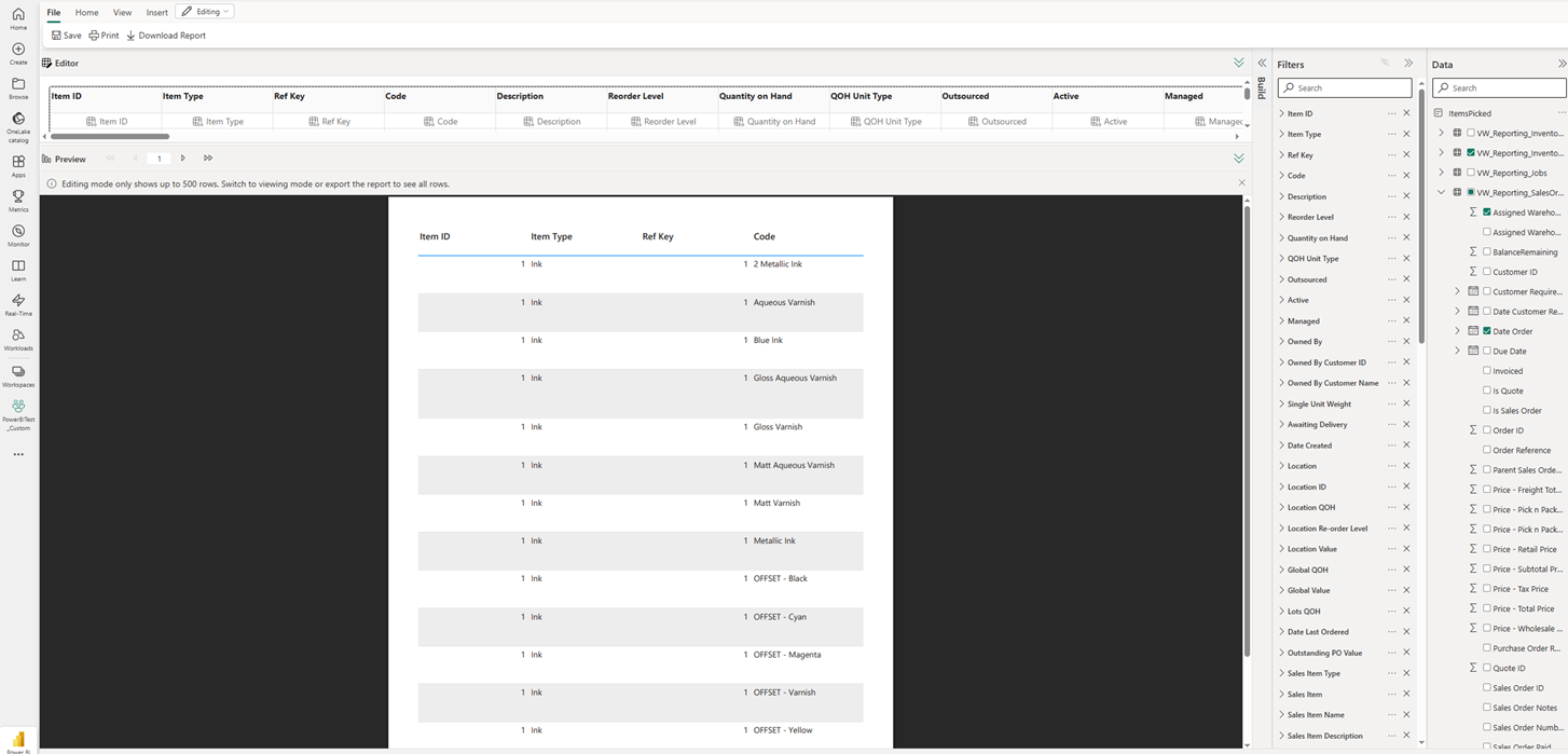 Any other folder - a folder created in the PowerBI Service. These folders cannot be created or managed within printIQ, this must be done in the PowerBI Service.